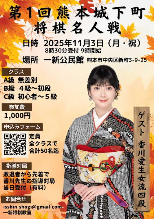 【開催案内】第1回熊本城下町将棋名人戦(熊本県)
